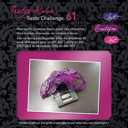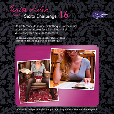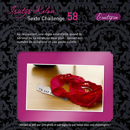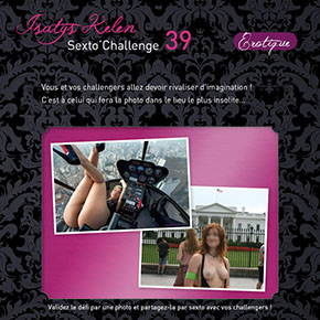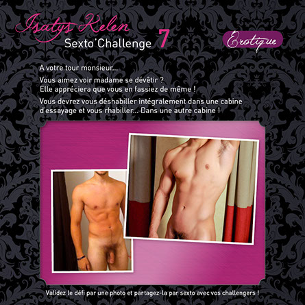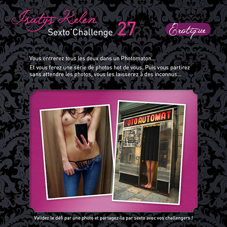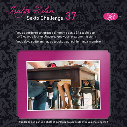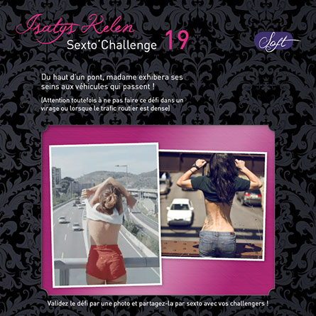 Quand vous réalisez le défi, faites une photo comme celles qui sont affichées en exemples et partagez-la avec vos challengers par sexto ! Le sexto précisera le déroulement, la réussite partielle ou totale et expliquera comment le défi s’est terminé...