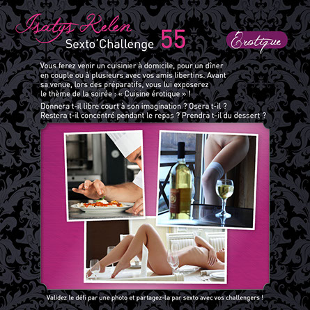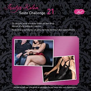 Le principe : Proposez un défi à vos amis libertins et lancez-vous ! L'objectif est que chaque couple réalise le défi de son coté en suivant les instructions. Les défis sont classés Soft, Érotique, Hot ou Hard.